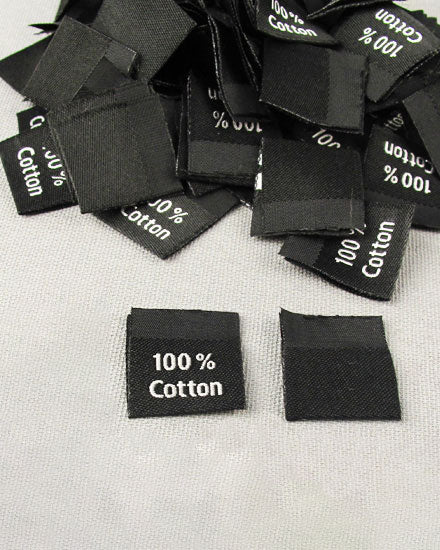 Various Woven Labels - Black, 2 x 1.5 cm + Seam, 500 pc per pack